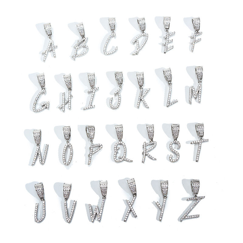 18k Gold Jewelry Iced Out Diamond Mini Initial Alphabet Cursive Letter Charm
